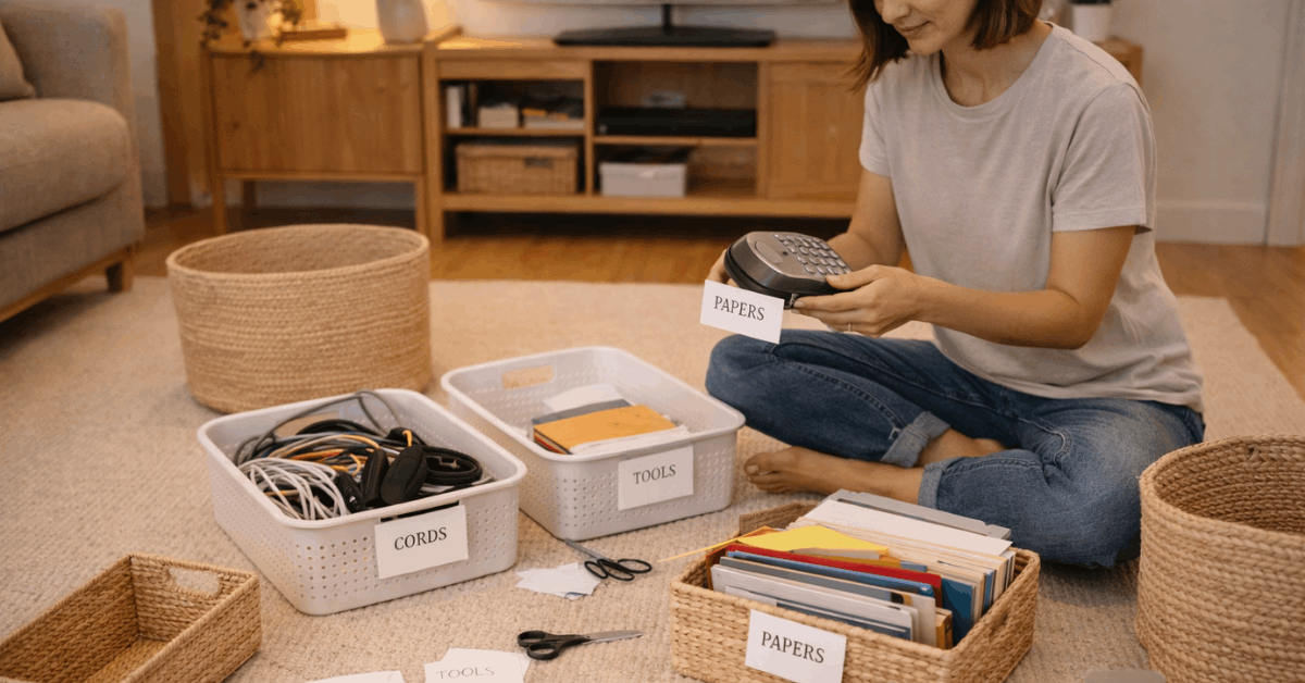 A stepwise system reduces guesswork because each action has a defined purpose. Categories come first, containers second, labels third, and habits last.