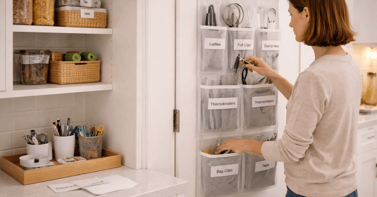 Start with the refrigerator and pantry because expired items leave quickly and free space for better category flow. Use shallow bins for packets, lazy susans for oils, and clear canisters for common grains when the budget allows. Place daily mugs and dishes near the dishwasher for shorter cycles.